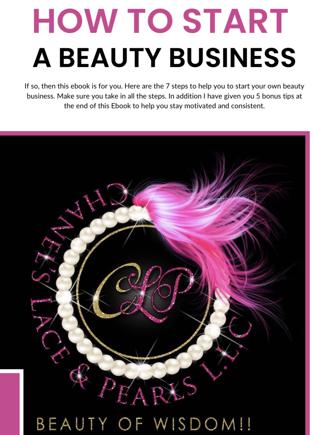 Exclusive 7 steps to help you start a beauty business. 5 extra tips at the end of of this E-book to help you WIN growing your business.